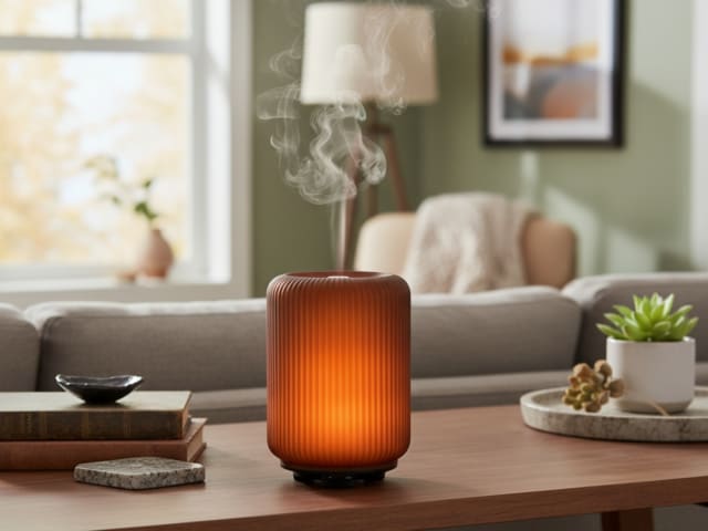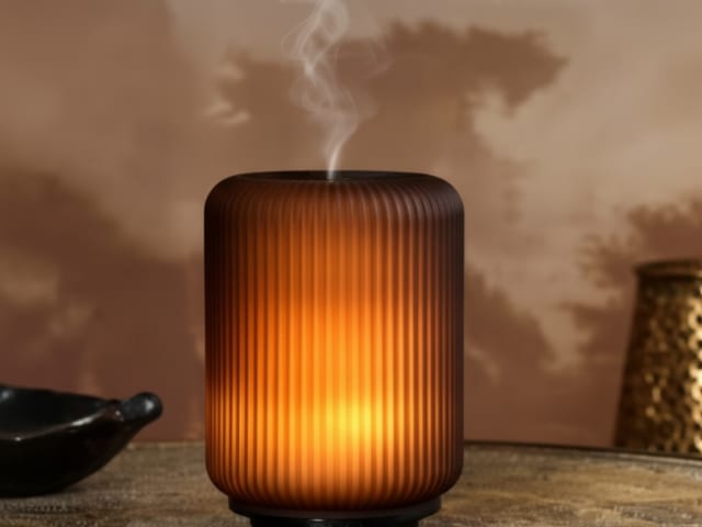 A Fern Amber üveg aroma diffúzor a kézműves üvegművészet eleganciáját és a modern formatervezést ötvözi.