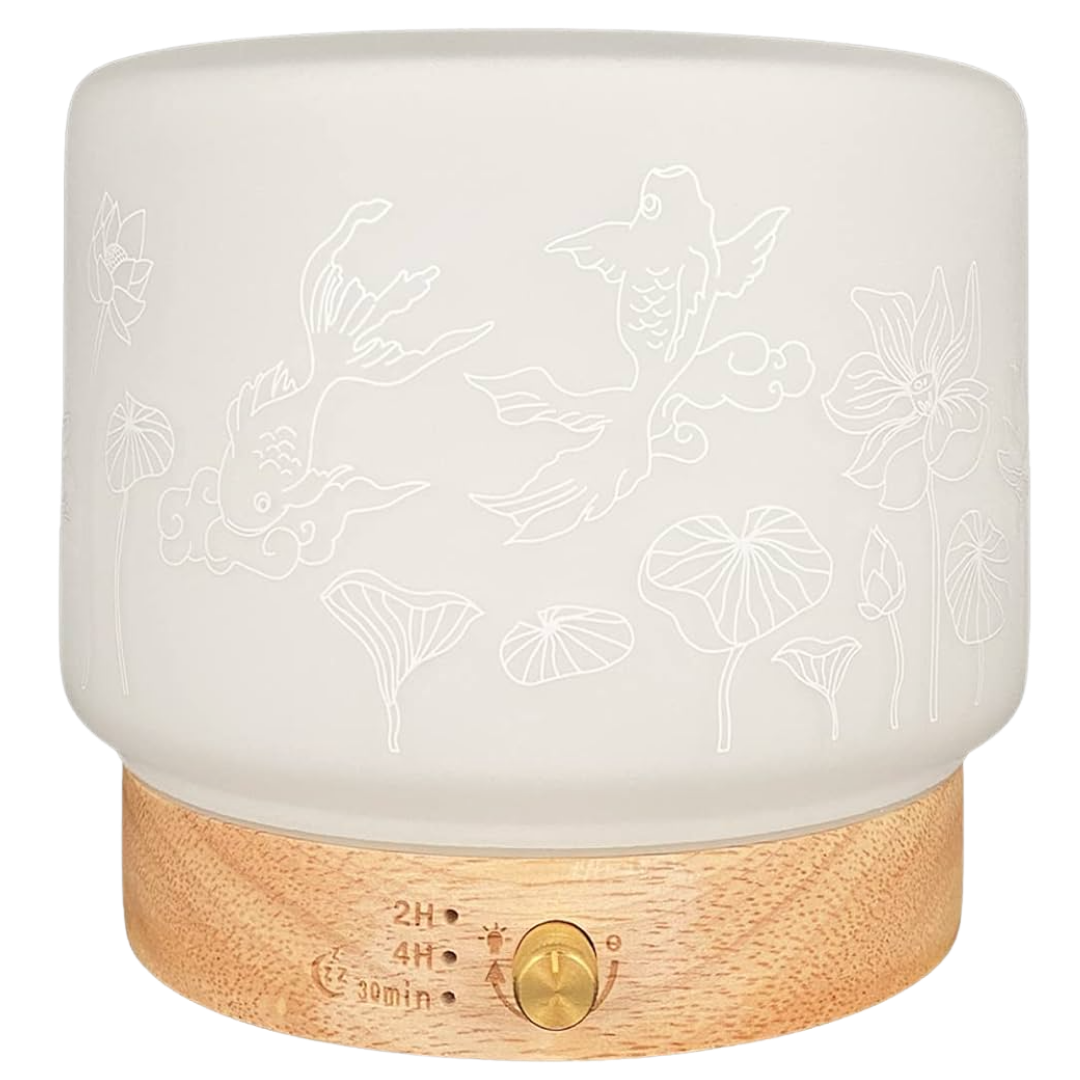 Letisztult formavilágával, természetes anyaghasználatával és meleg fényével a nyugalom szigetévé varázsolja a teret – legyen szó egy csendes reggelről, koncentrált munkáról vagy esti pihenésről. A készülék különlegessége a csodásan megmunkált üveg búrája, amelyet kecsesen úszó halak és finom vízi növények mintázata díszít, így bekapcsolt állapotban egy varázslatos, tengeri világot idéző hangulatot teremt a szobában. Négyféle aromaterápiás programja segít, hogy mindig a hangulatodhoz igazodó élményt kapj – legyen az felfrissülés, relaxáció vagy egy mély, nyugodt alvásra való ráhangolódás.